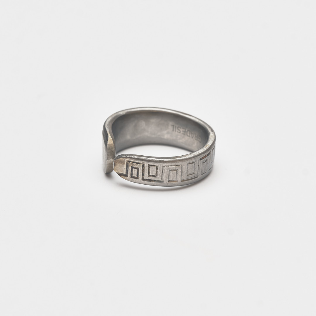 Edelstahlring mit geometrischem Muster.